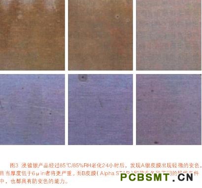 相關(guān)因素中又以銀層厚度最為關(guān)建,務(wù)須將銀層厚度盡可能的減低。其次是前處理的微蝕不可讓銅面太過粗糙,而銀厚度分布的均勻性也是重點之一。至于銀層中的有機物含量,則可能從多點取樣銀層純度分析中而反向得知,其中純銀含量不可低于90%之原子比。